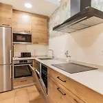 Cet établissement Chalet De Aranda - Elegante Casa Para 7 Con Jardin Privado, Ac Y Wifi comprend un coin repas extérieur avec un réfrigérateur, un four et de la vaisselle.
